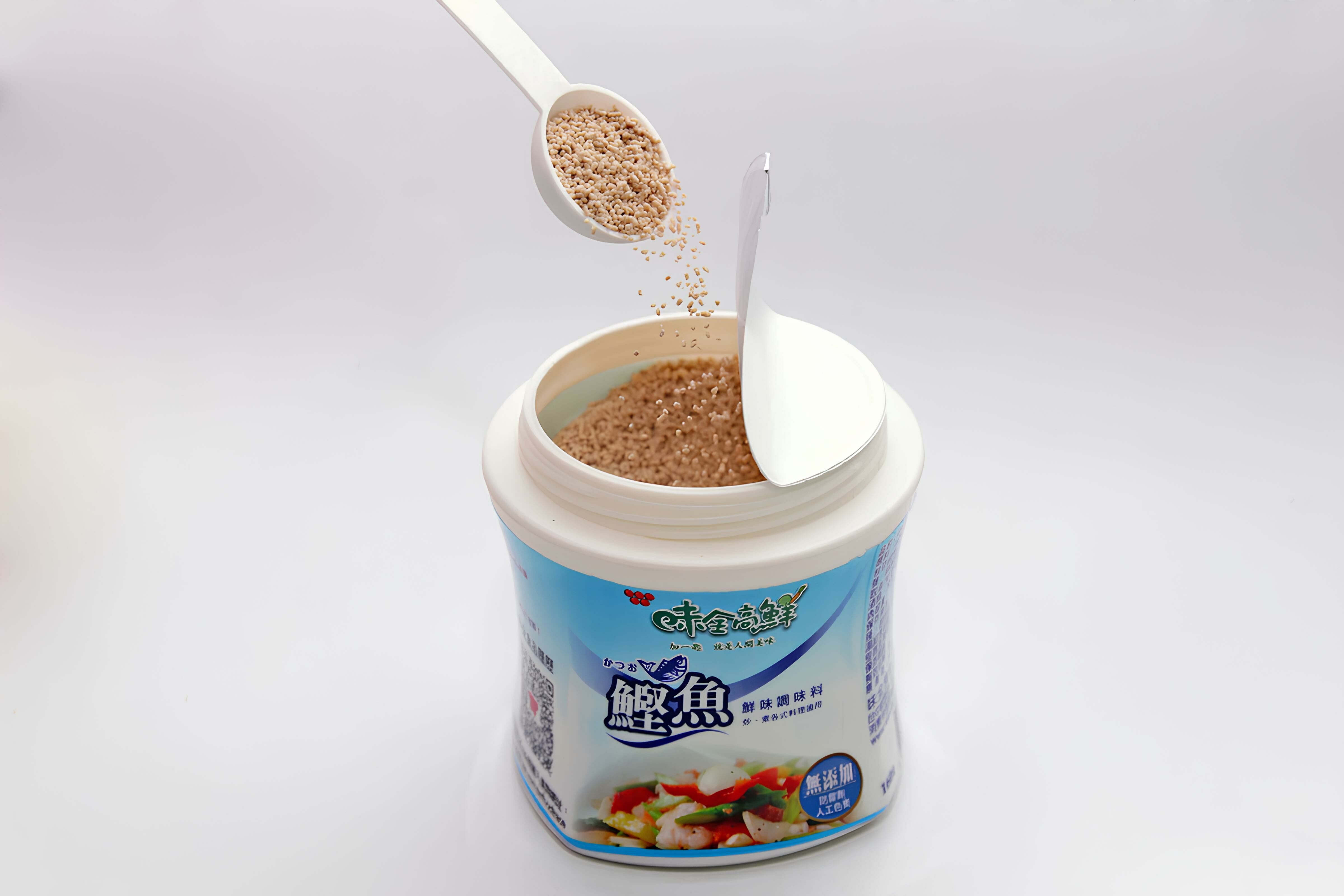 斜邊原理的置放湯匙,使消費者使用時不易沾濕調味料。