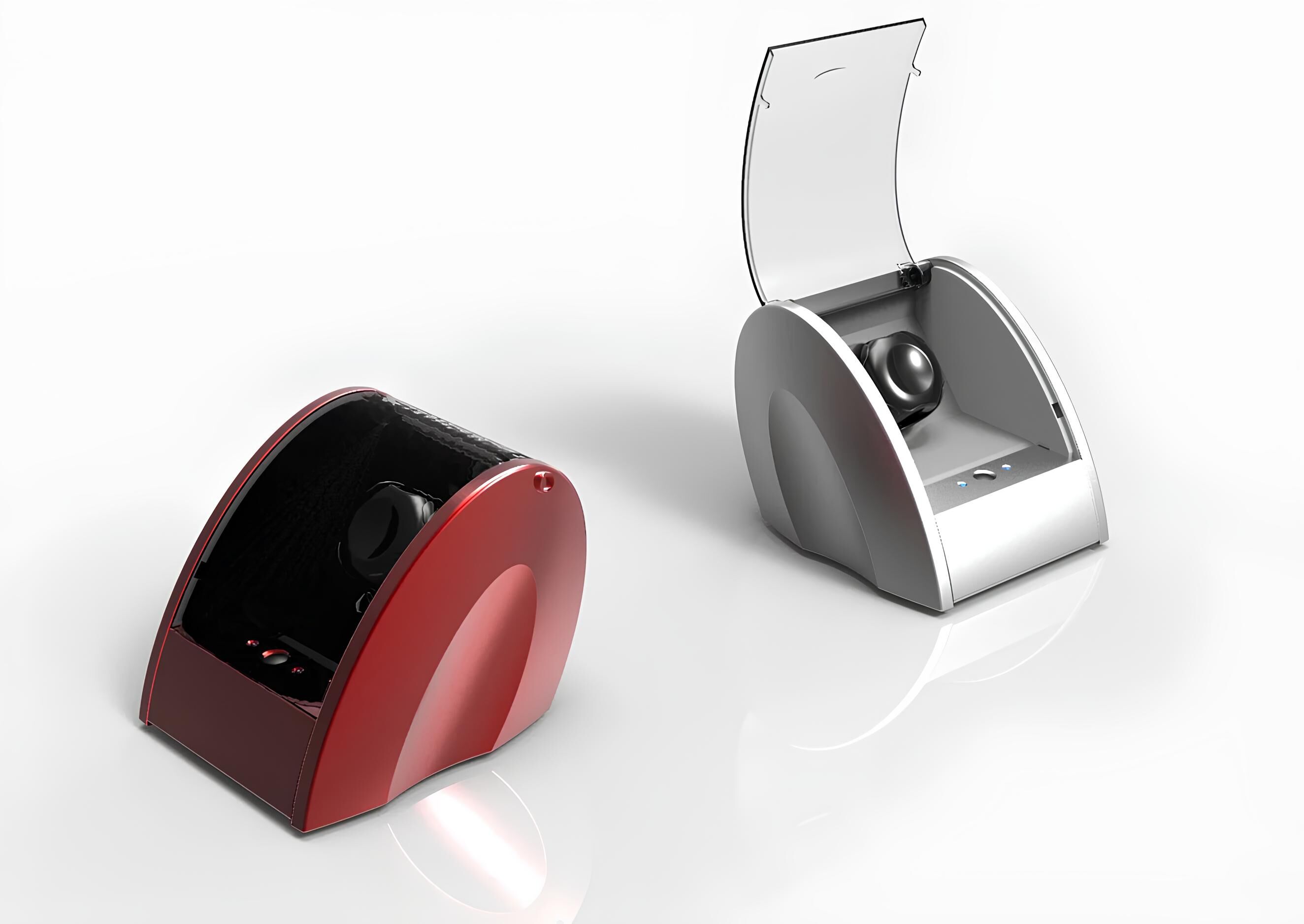 機械錶展錶座設計,鋼琴烤漆自動上鏈靜音搖錶器展示,