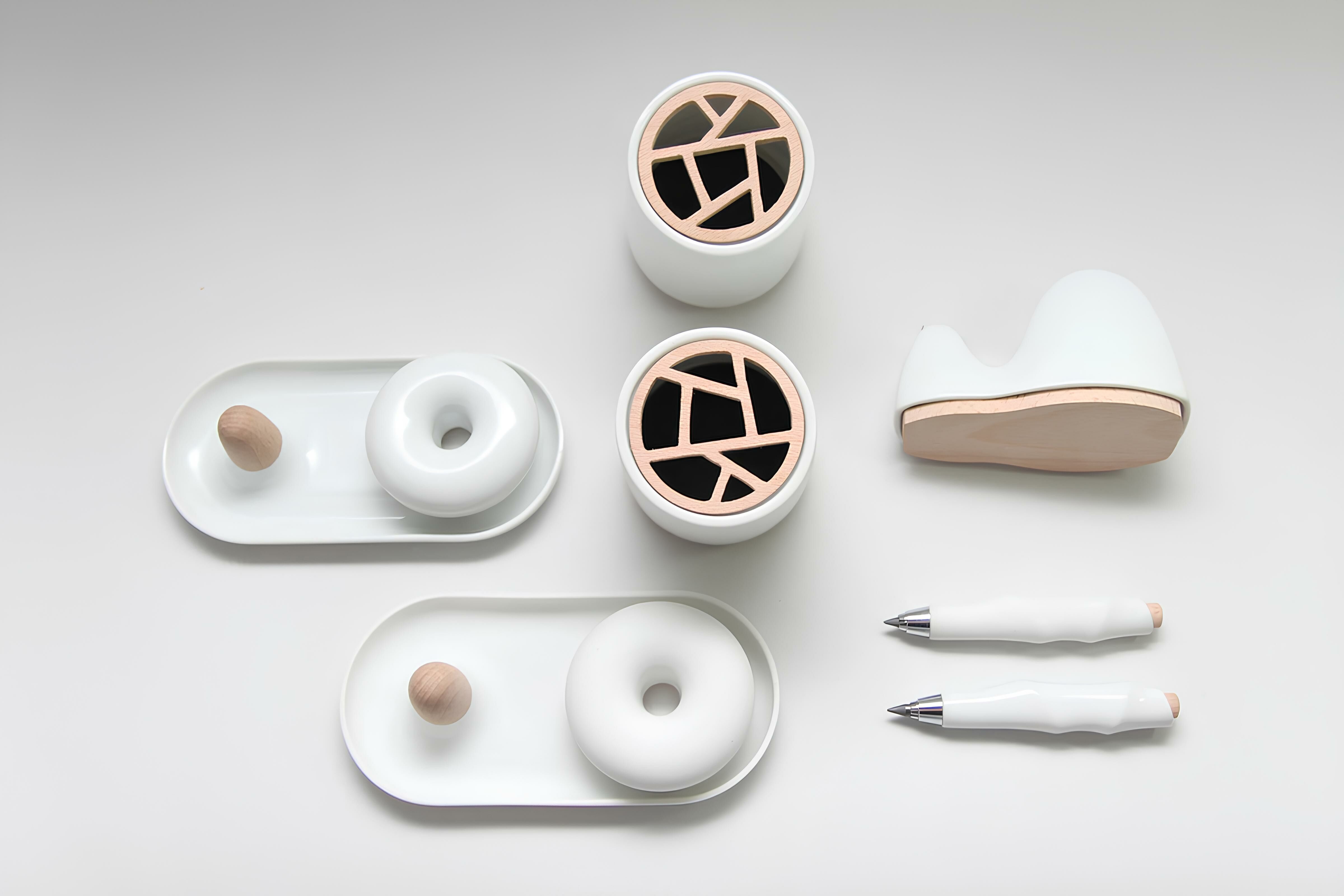 每件器物皆由精緻木材與白瓷結合而成,讓品味成為生活裡的一部份。