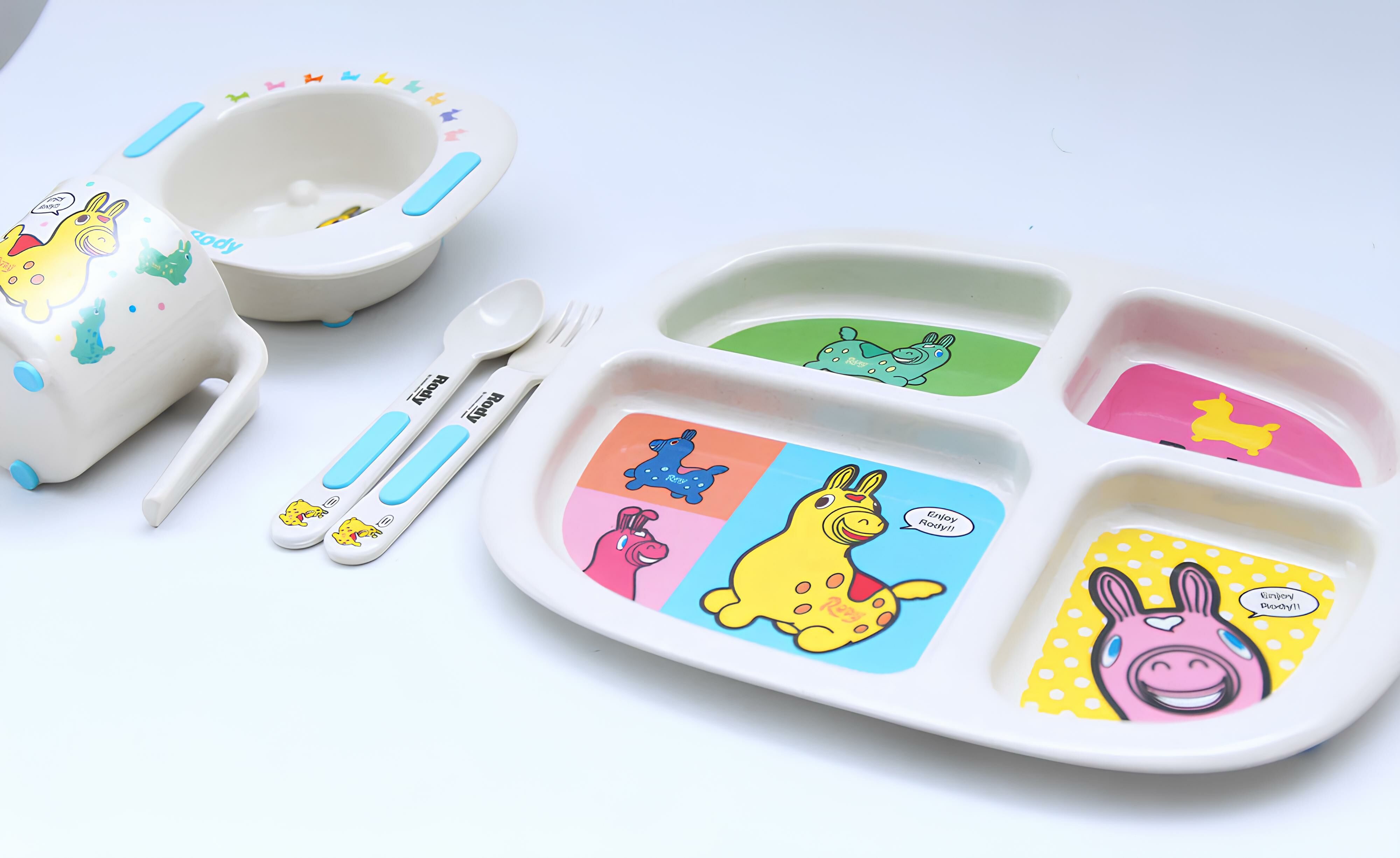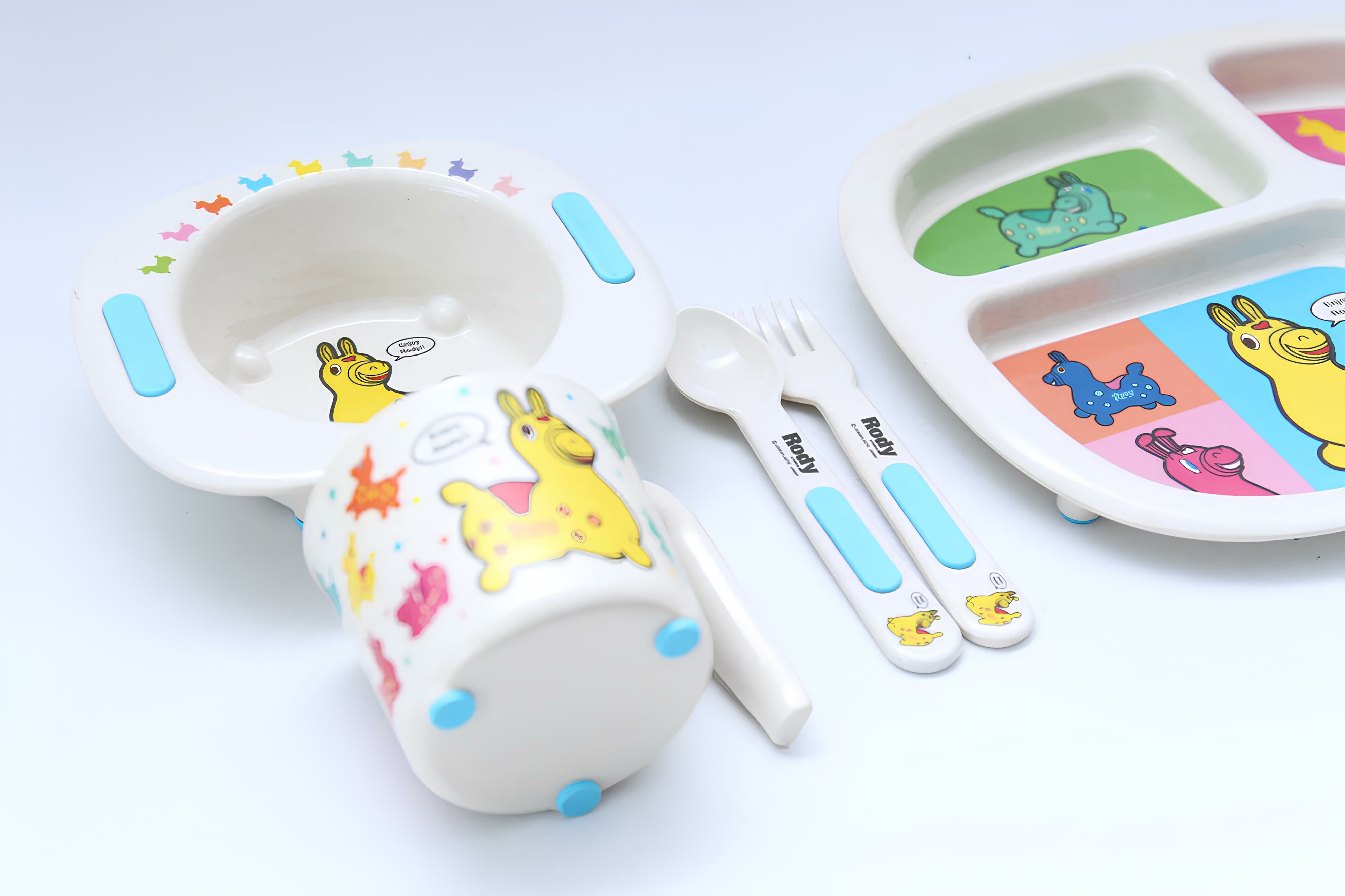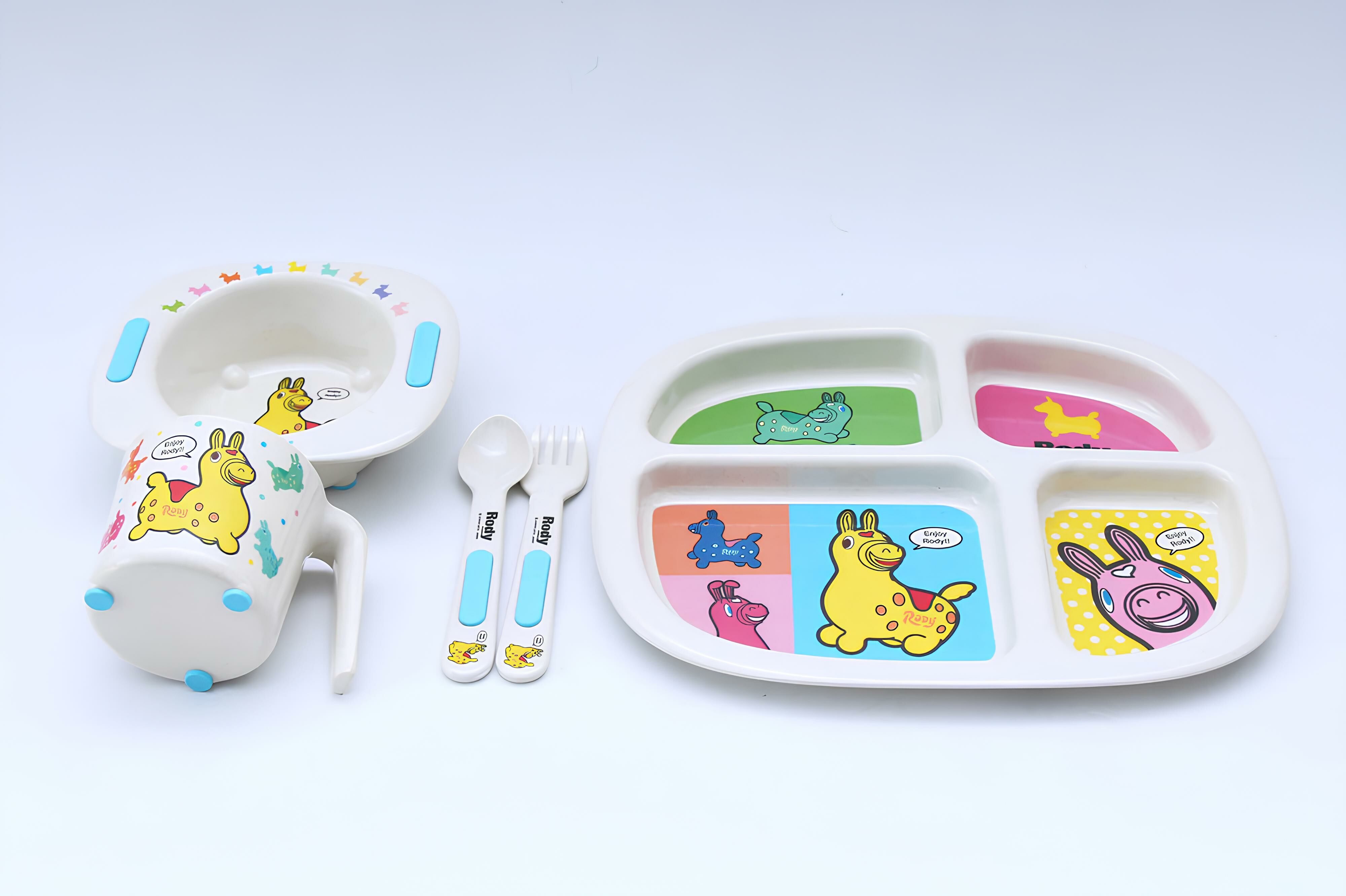 餐具組包含餐盤,餐碗,杯子,湯匙及叉子,這些是孩子們用餐時必備的器具,