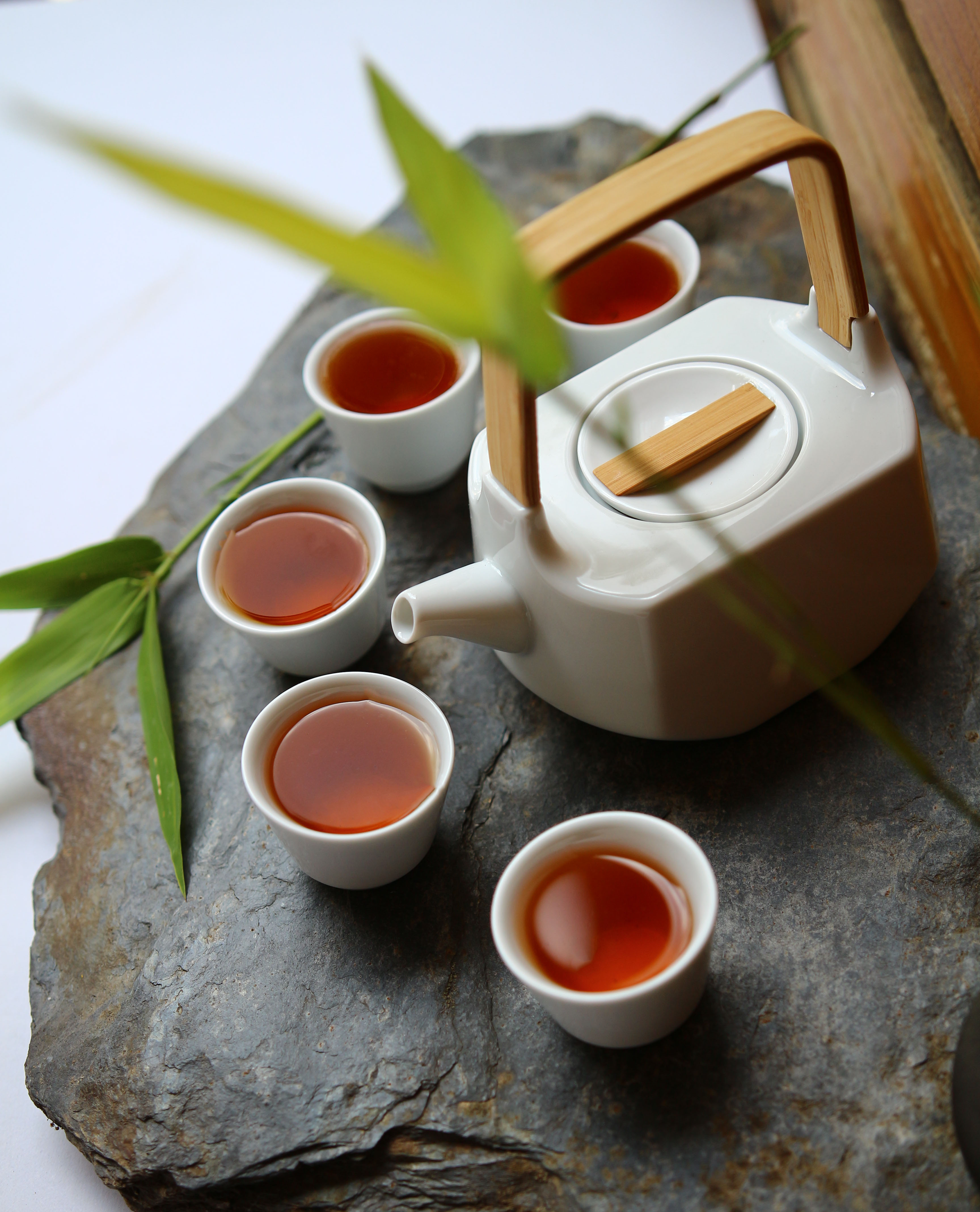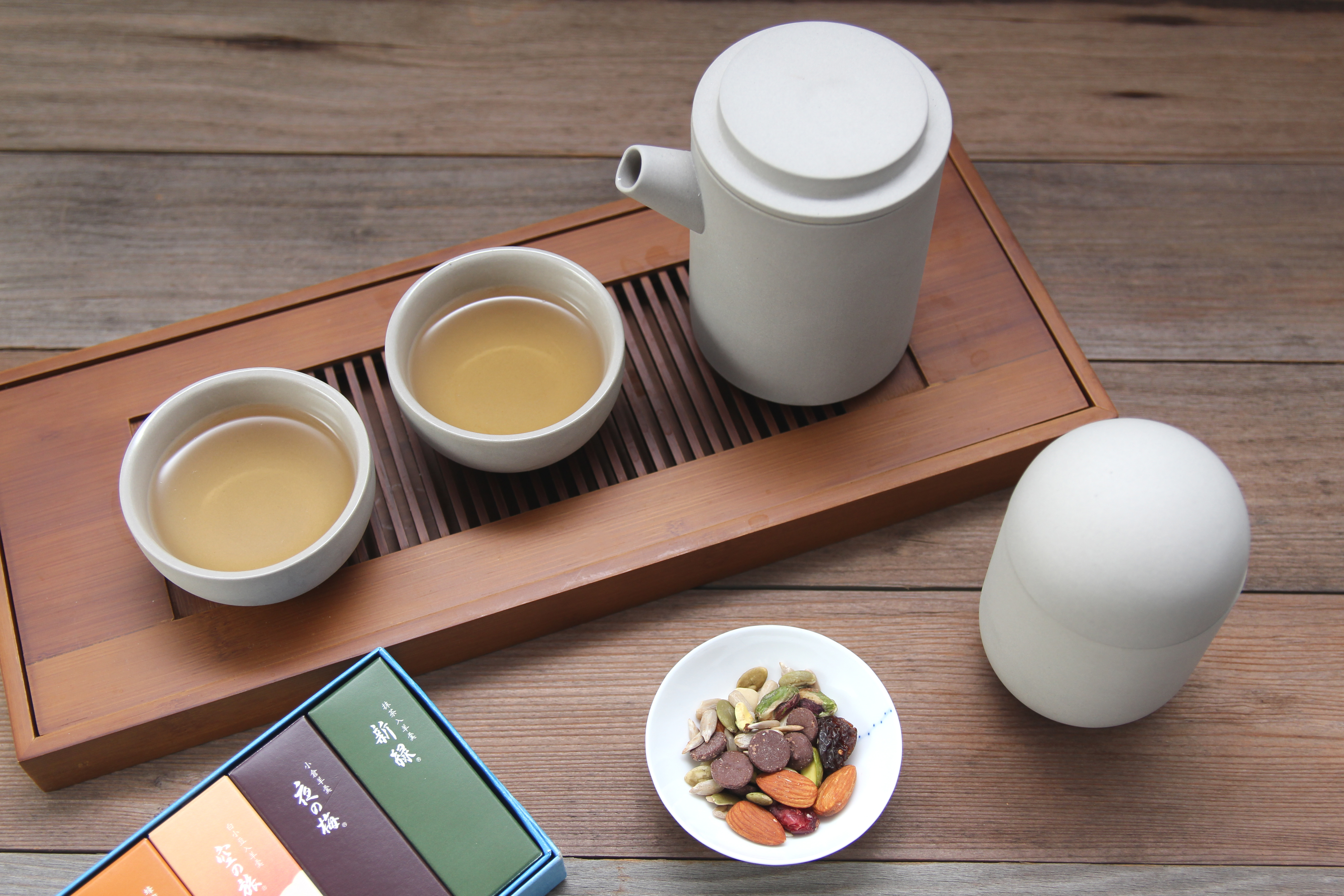 將套組中壺、杯、茶葉 整合在木盒包裝中, 將使用的驚喜與愉悅感轉化至茶具組。